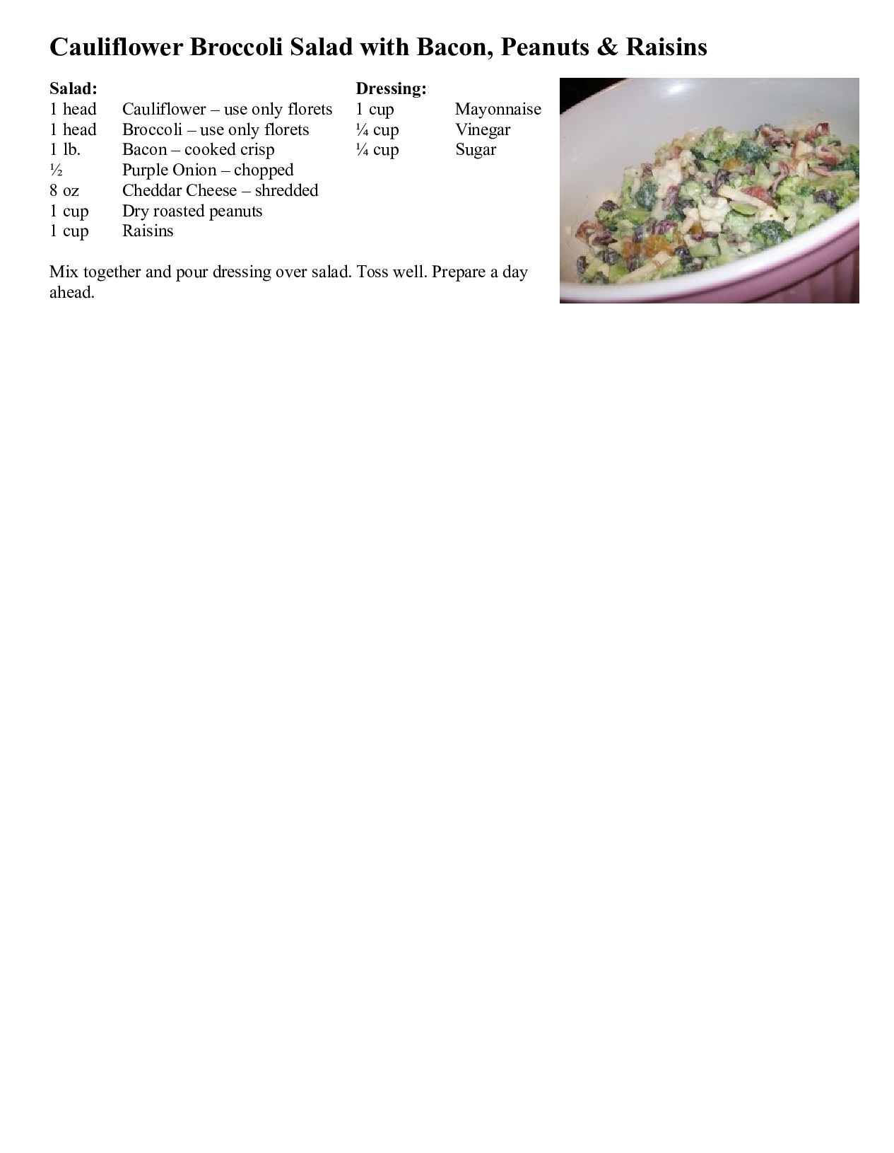 Cauliflower Broccoli Salad with Bacon, Peanuts & Raisins