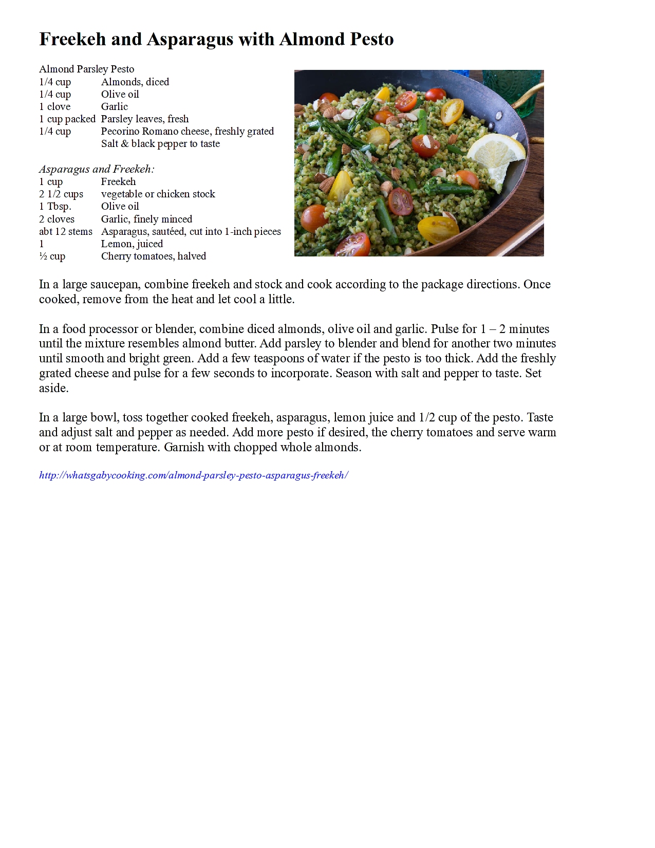 Freekeh and Asparagus with Almond Pesto