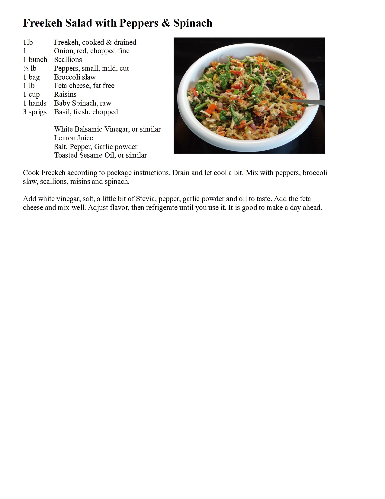 Freekeh Salad with Peppers & Spinach