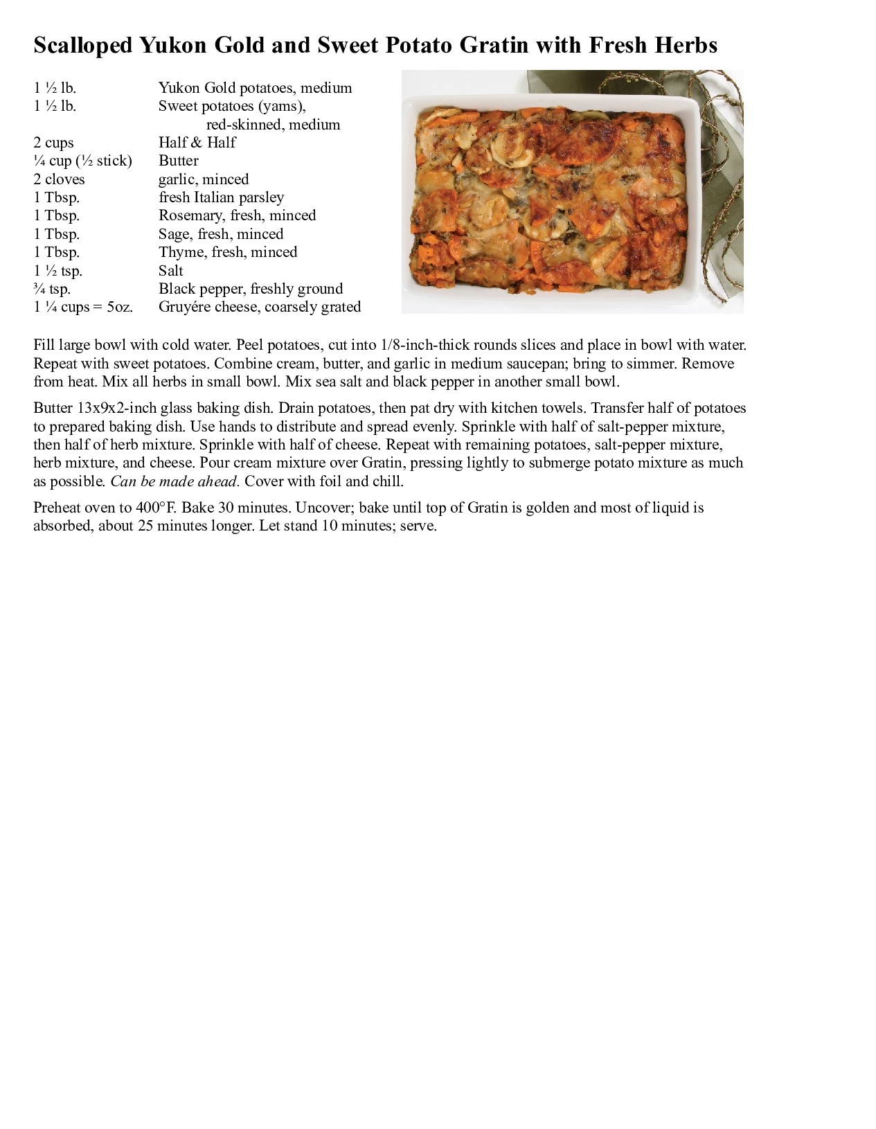 Scalloped Yukon Gold and Sweet Potato Gratin with Fresh Herbs