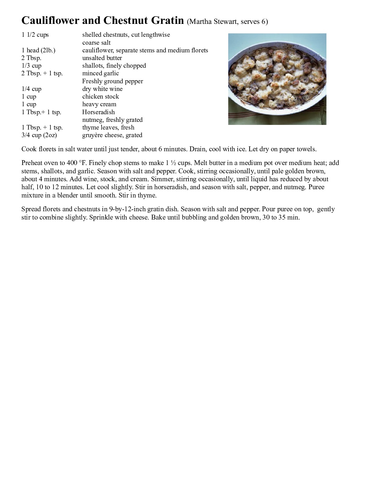 Cauliflower and Chestnut Gratin