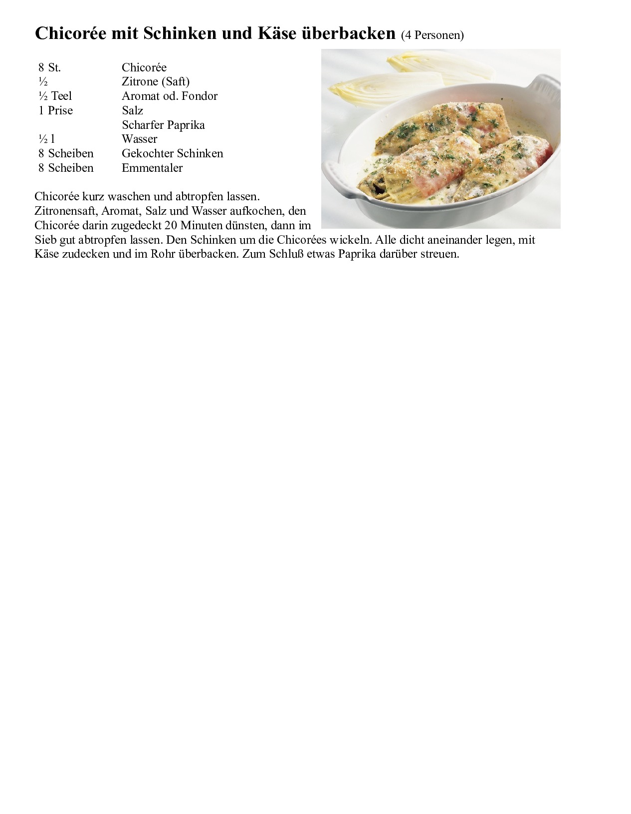 Chicorée mit Schinken und Käse überbacken