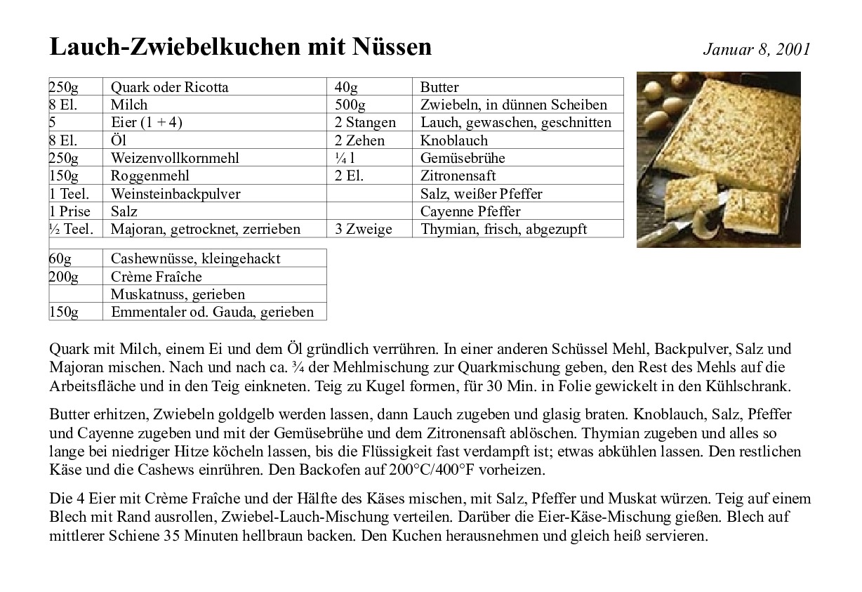 Lauch-Zwiebelkuchen mit Nüssen