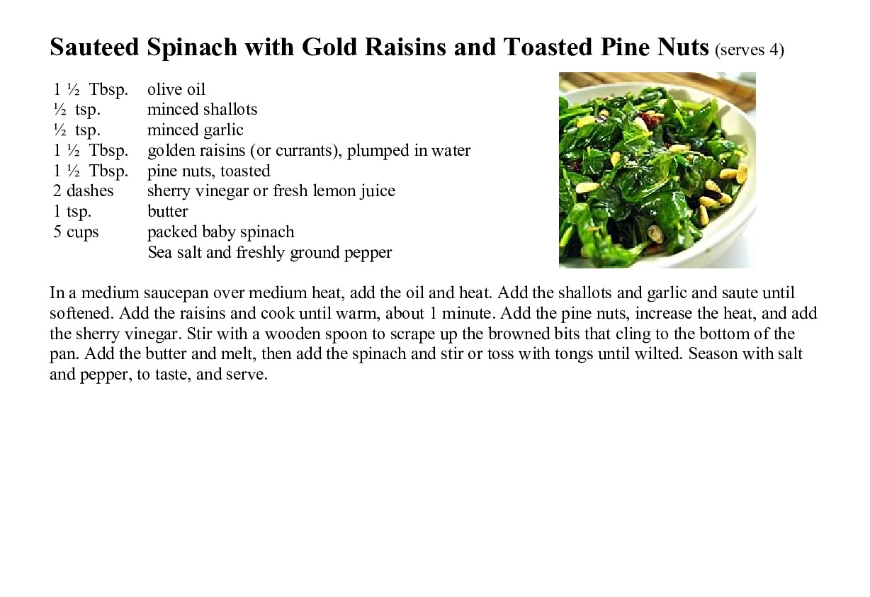 Sauteed Spinach with Gold Raisins and Toasted Pine Nuts