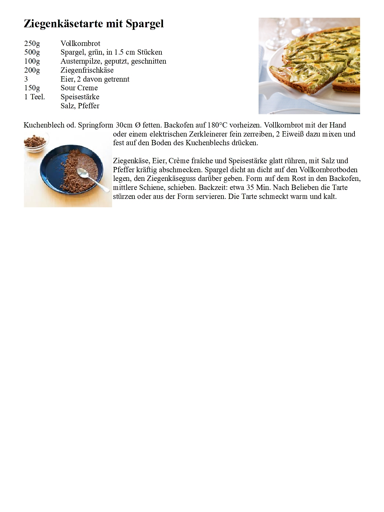 Ziegenkäsetarte mit Spargel