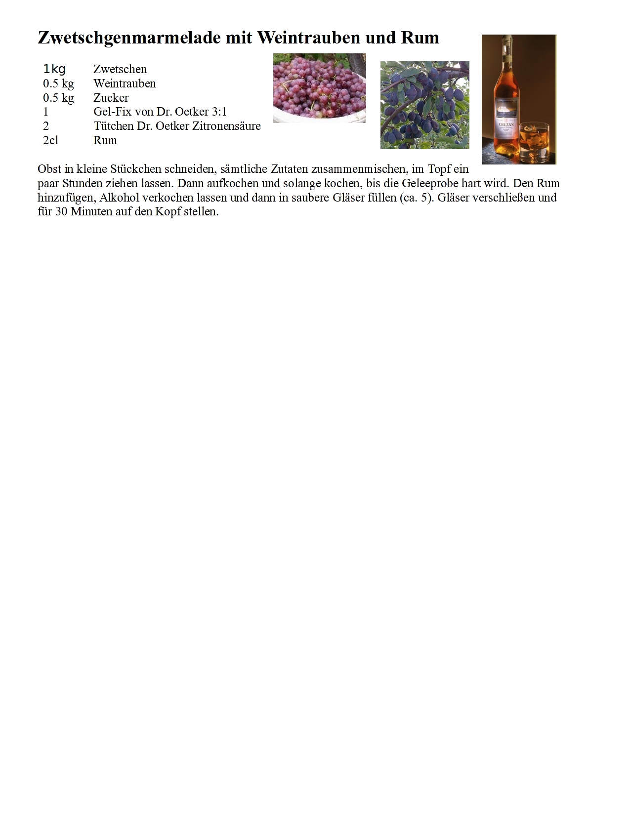 Zwetschgenmarmelade mit Weintrauben und Rum