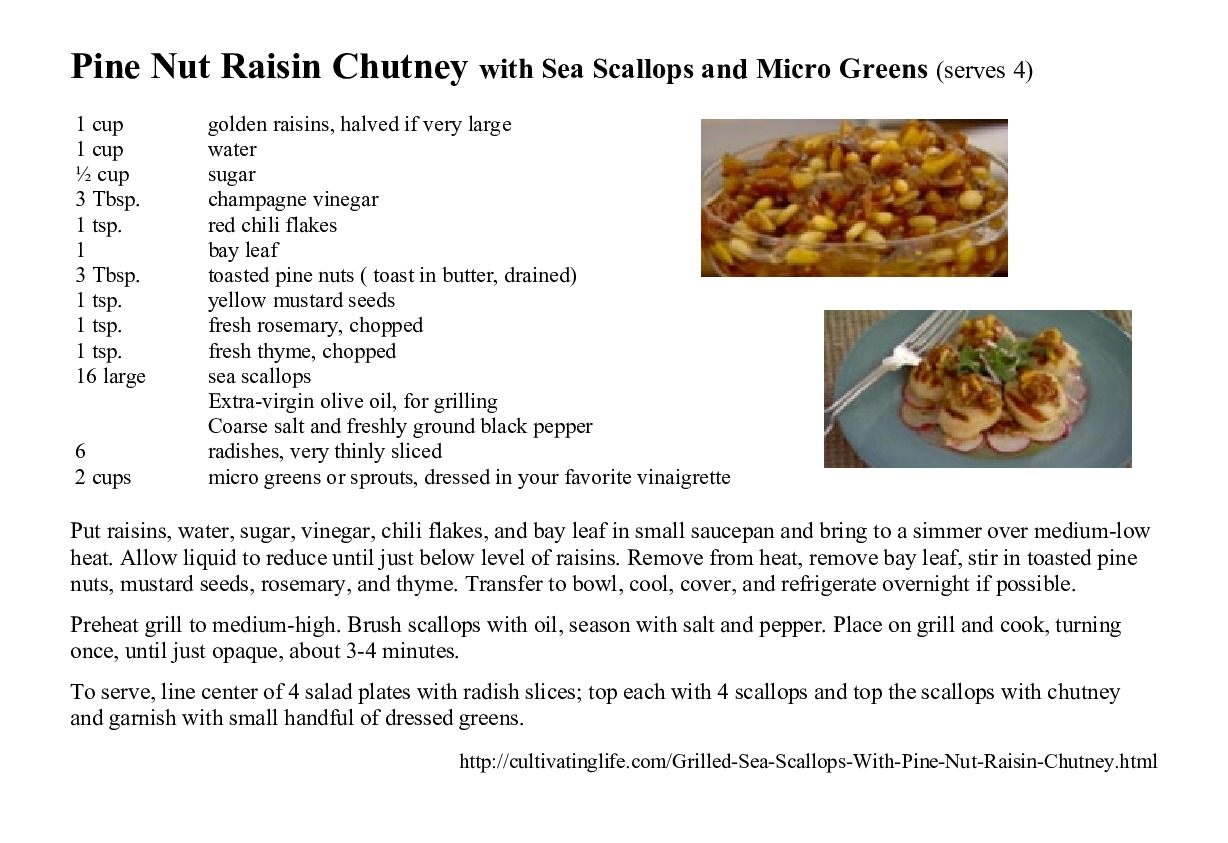 Pine Nut Raisin Chutney with Sea Scallops and Micro Greens