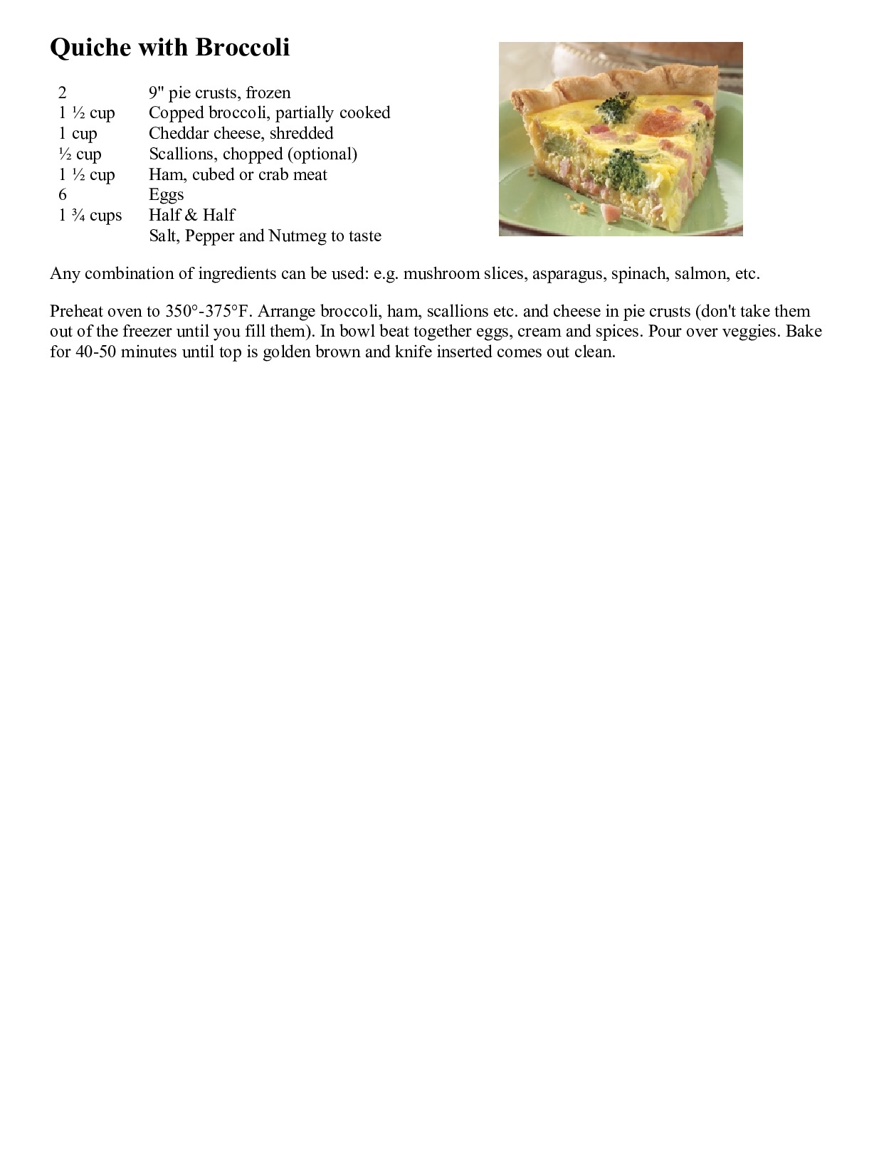 Quiche with Broccoli